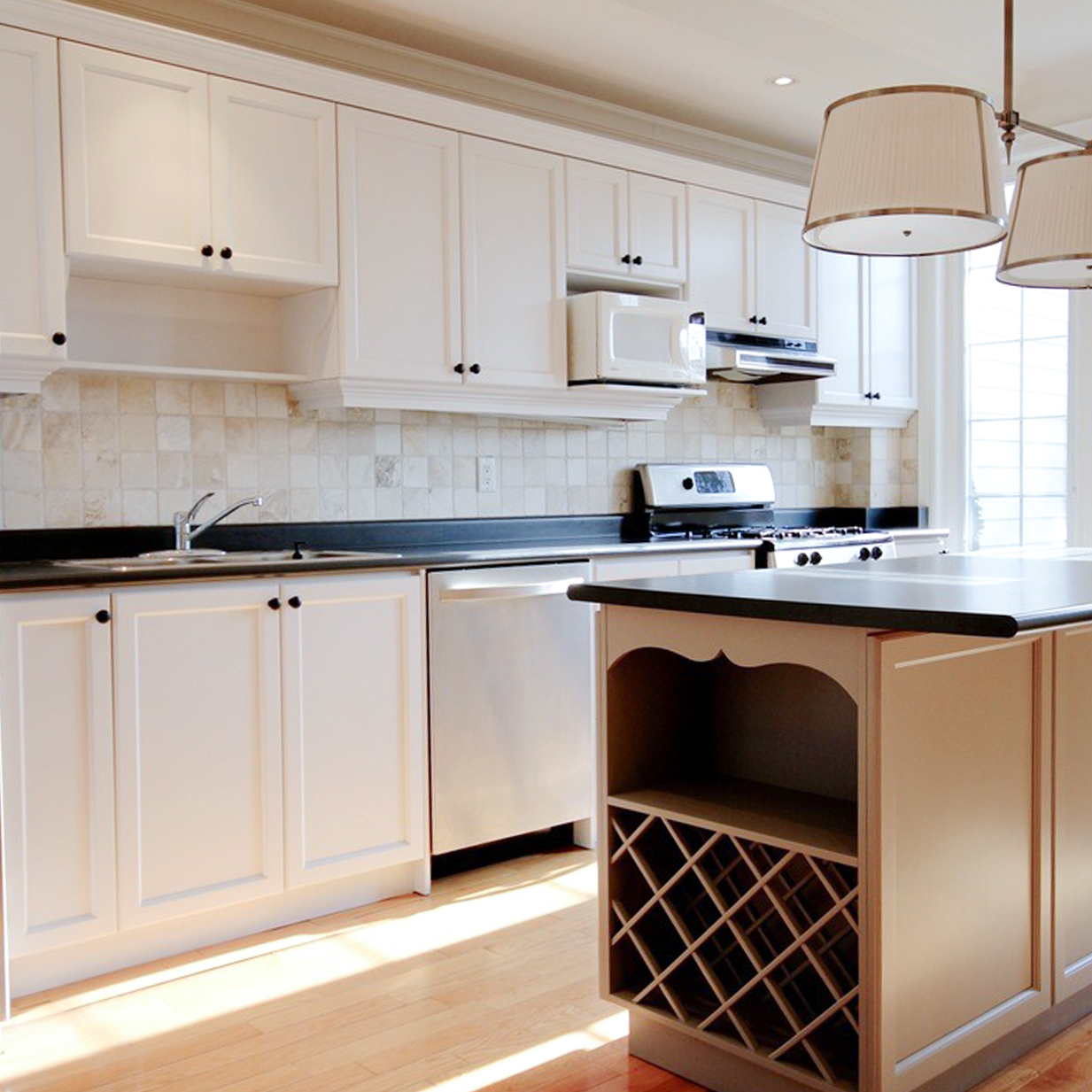Laminate cabinets can be effectively painted after proper preparation and priming, and we can assist you with this, too.